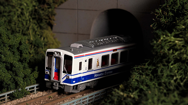 北越急行は十日町を中心に上越線と接続する六日町と信越本線と接続する犀潟を結ぶ59.5kmの「ほくほく線」を運営する第3セクターです。 HK100形はほくほく線の開業時から活躍する車両です。 2009年から行われたリニューアル工事により外観塗装が変更され旧デザインは失われていましたが、2025年4月に復刻され、2両が一般車両旧デザインとなり活躍しています。 本製品は復刻塗装となったHK100-3、HK100-6の2両セットです。