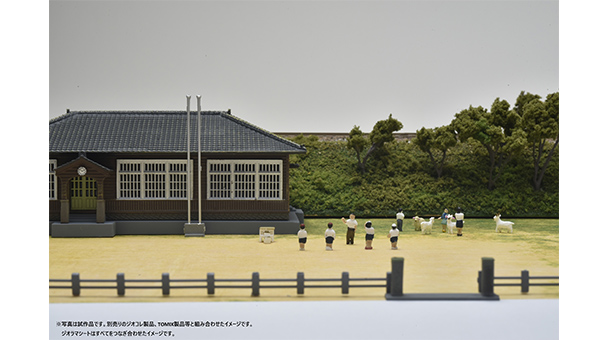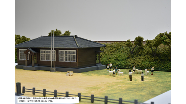 セット内容: 建物、門、小物、人間フィギュア×4、ジオラマシートA6サイズ×4、シール 本体サイズ(建物1個あたり): W135×H55×D75(㎜)