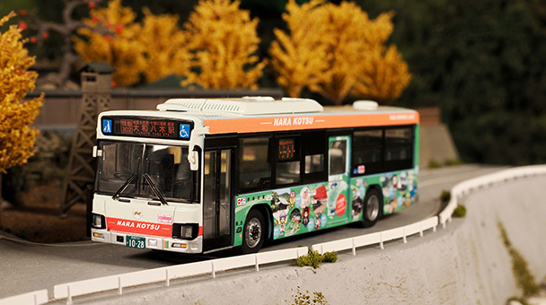 全国バスコレ1/80シリーズに、ニューフェイスが登場です! 記念すべき第1回目は、高速道路を使わない路線では日本一距離の長い路線バスで有名な奈良交通の八木新宮線のいすゞ エルガが登場します。 奈良交通の八木新宮線は、奈良県の近鉄線・大和八木駅から和歌山県の紀勢本線・新宮駅まで全長169.9キロ、バス停留所数168カ所、所要時間約6時間30分の紀伊半島を縦断する長大路線です。 沿線には上野地の谷瀬の吊り橋や、十津川温泉、熊野本宮大社、湯の峰温泉、渡瀬温泉、川湯温泉と言った観光地があり、近年は訪日外国人観光客にも人気のエリアとなっています。 ボディデザインは沿線自治体のゆるキャラが描かれており、可愛らしい賑やかなデザインとなっています。 1/80ならでは圧倒的なサイズ感で細部まで再現した製品に是非ご期待下さい!