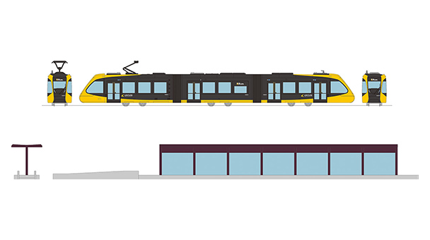宇都宮ライトレールは2023年8月に開業した日本初の全線新設のLRT路線で、愛称はライトライン。 栃木県宇都宮市の宇都宮駅東口から鬼怒川を渡り、芳賀町の芳賀・高根沢工業団地までの14.6kmを結びます。 先頭部の流線形形状やひときわ目を引くイエローの車体色が特徴のHU300形の第2編成を製品化いたします。 また、路線内で緩急接続が可能な電停が存在し、この特徴的な島式電停も本製品に付属します。 一部パーツをカットすることで一般的な相対式電停とすることもできます。