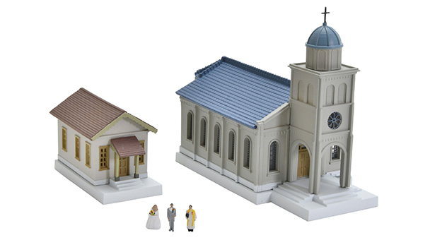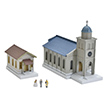 セット内容: 教会、小屋、人間フィギュア×3 本体サイズ(教会1個あたり): W60×H95×D115(㎜)