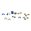 セット内容: コンテナ単品×3、台車、カート、コンテナ積上、木製パレット積上、木製パレット単品×2、荷袋単品×6、新聞紙束積上×2、新聞紙束単品×4、荷袋セット×6 本体サイズ(コンテナ積上1個あたり): W10×H12×D10(㎜)