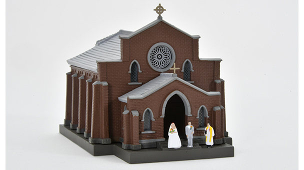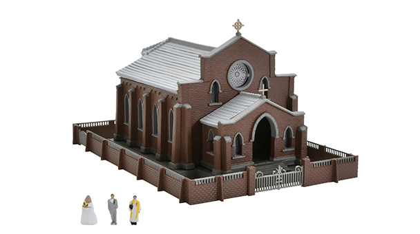 セット内容: 教会、塀、人間フィギュア×3 本体サイズ(門を含む): W90×H80×D135(㎜)